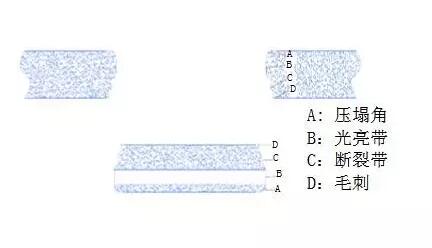 過大間隙形成帶有較大卷邊和邊緣撕裂的孔,令剖面稍微有一薄邊緣突出。太小的間隙形成帶稍微卷邊和大角度撕裂,導(dǎo)致剖面或多或少地垂直于材料表面。